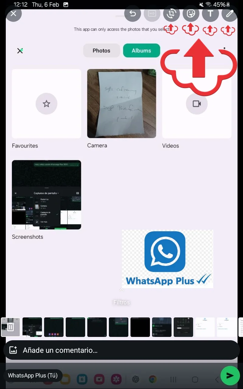 - También puedes editar la imagen, recortarla, añadir emojis o escribir texto sobre ella.